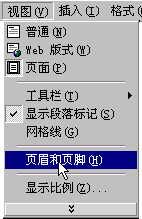 1、 从【视图】菜单中选择【页眉和页脚】命令如下图: