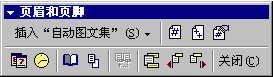 2、 将显示"页眉"框和"页眉/页脚"工具栏。光标指向工具栏上的图标,将显示其功能。如下图