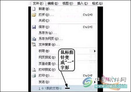 首先关闭文件记忆功能:启动Word后单击菜单“工具/选项”,在打开的窗口中切换到“常规”选项卡,取消“列出最近所用文件”项的钩,点击“确定”返回。然后我们清除目前已经被记忆下的菜单:在Word中按“Ctrl+Alt+ -”,注意这里的“-”键是主键盘上等号旁边的键,而非小键盘功能键。此时鼠标指针会变成“一”字形的粗黑形状,用它点击“文件”菜单,然后单击要删除的文档即可(如图)。