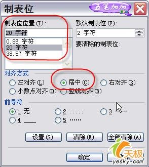 第二步:在标尺的左侧、中间位置和右侧位置分别单击,各加上一个制表符标记。此时加入的制表符均为居左对齐方式。不过,我们可以对它们进行修改。双击第二个制表符,打开如图1所示的对话框。