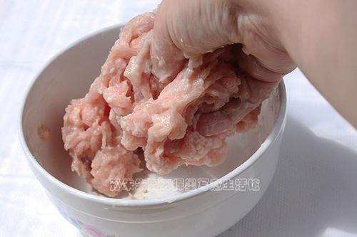 3、将里脊肉碗中滴少许料酒放一点点盐抓匀;
