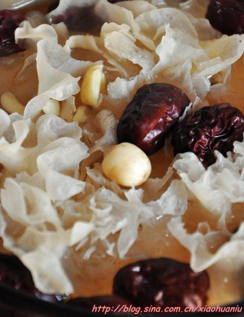3.小火煮40分钟,待银耳煮微稠时放大枣,继续煮30分钟即可。