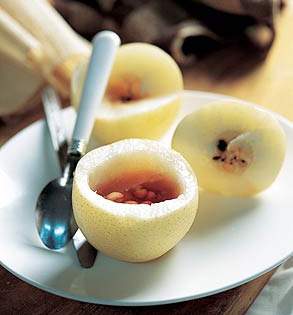 (2)雪梨1~2个,黑豆30克。将梨洗净切片,加水适量,放入黑豆,用文火炖烂,熟后服食。适用于老年人肺炎肺肾亏虚者。
