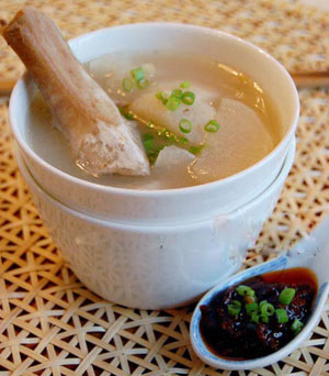 如猪骨汤、牛骨汤、鸡皮、鸡骨汤等,可增强皮肤的弹性。人体皮肤分为表皮、真皮、皮下组织3层,影响皮肤美容的主要是真皮。真皮是由弹性纤维构成的,而组成弹性纤维的最主要物质是硫酸软骨素。人体内如若缺乏这种软骨素,皮肤即失去了弹性,出现皱纹。所以,多吃些含硫酸软骨素丰富的食物,就可以延缓皮肤皱纹的发生,使皮肤保持弹性和细腻。