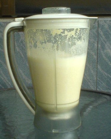 4. 将余下的半碗黄豆加3碗水,放进搅拌器内打10分钟