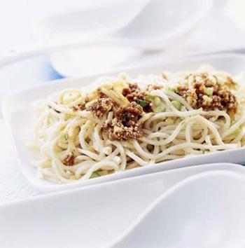 荞麦面条最适合的搭配就是用肉末和黄瓜一起凉拌,荞麦面性凉,容易伤胃,所以在做的时候一定要泡得时间长一些,直到泡软,口感更好,也更容易消化。黄瓜可以让荞麦面更清爽不容易腻,而肉末最好采用羊肉末,羊肉温暖养胃,和荞麦是很好的搭配。