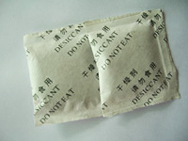 此干燥剂是透湿性小袋包装的不同品种的硅胶,主要原料硅胶是一种高微孔结构的含水二氧化硅,无毒、无味、无嗅,化学性质稳定,具强烈的吸湿性能。因而广泛用于仪器、仪表、设备器械、皮革、箱包、鞋类、纺织品、食品、药品等的贮存和运输中控制环境的相对湿度,防止物品受潮,霉变和锈蚀。