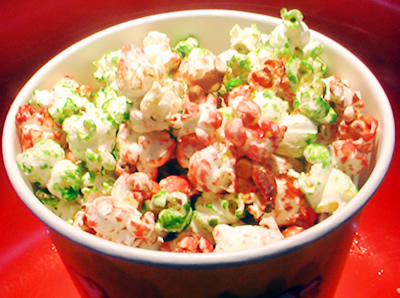 遗憾的是,现在的爆米花在加工时,为了让爆米花的味道更诱人,加入了不少的人造奶油,个别口味的爆米花还会加入一些香精;为了让爆米花更漂亮,还要往里面加些色素,给他穿上了美丽的外衣。